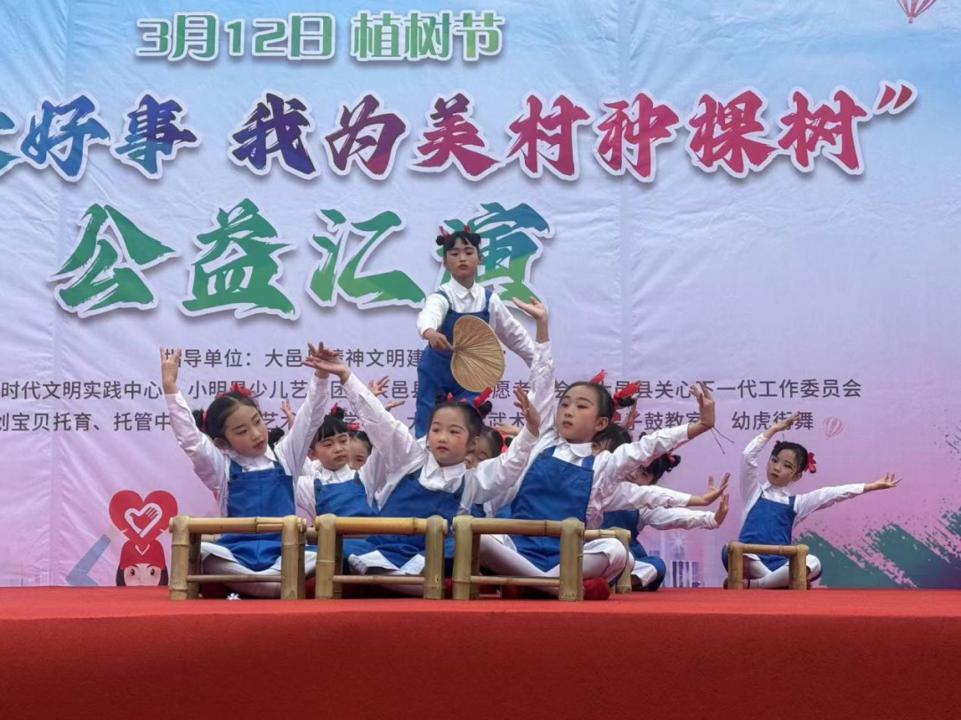 三月春风拂沃野,植树播绿正当时。为增强少年儿童的环保意识,同时在社会广泛倡导植树造林。在全国第46个“植树节”来临之际,由大邑县文明办指导,红手套志愿发起的“一块做好事,我为美村种棵树”文艺募捐直通车走进大邑小明星少儿艺术团,为市民群众带来一场精彩的文艺汇演。