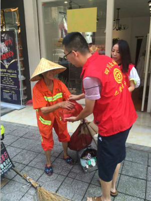 近日,四川众城爱心慈善携手大邑县各大商家以及晋原街道驷马社区、东街社区、鸳鸯社区志愿者们一起走进大邑县环卫工人开展志愿服务活动,志愿者们从大邑县城内前往大双路、成温邛快速通道、大新路、川西106线、三安路、成新蒲快速通道等,为环卫工人们送去纯净水、毛巾、面包、藿香正气液等物品。